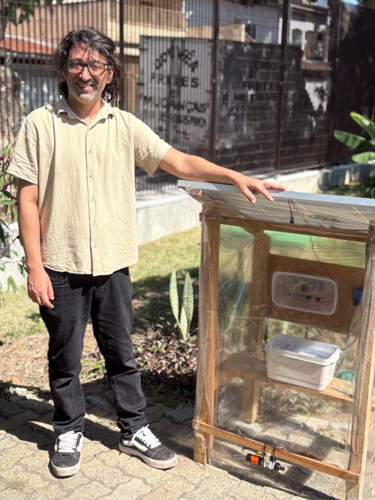 Registro feito por Caleb e Suellen da oficina Hortas Inteligentes com energia solar no Sesc Taubaté nos dias 30 de abril, 1,2 e 3 de maio de 2025